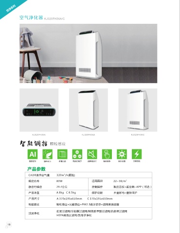 智能调节 除 多重过滤 释放负离子 超静音运行 触控操作 紫外杀菌 光敏感应