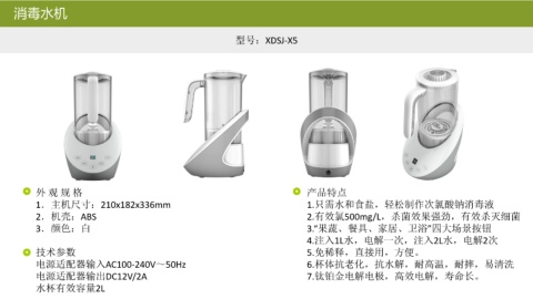 2.机壳:ABS 2.有效氯500mg/L,杀菌效果强劲,有效杀灭细菌