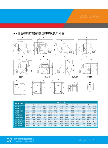 ★3 法兰德FLDT 系列常压FRP 风机尺寸图 法兰德FLDH 系列高压FRP 风机选型说明 ★ 法兰德1 FLDH 系列高压FRP 皮带式风机选型参数表 本参数表所列数据均为实测数据,特殊参数另行选型。 07 法兰德节能防腐风机 法兰德节能防腐风机 08 性能卓越不凡 品质持续提升 性能卓越不凡 品质持续提升