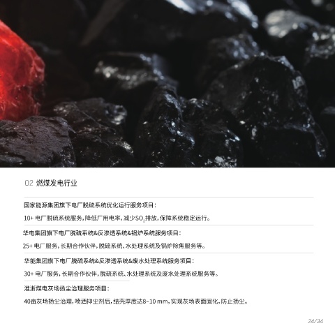 30+ 电厂服务,长期合作伙伴,脱硫系统、水处理系统及废水处理系统服务等。
