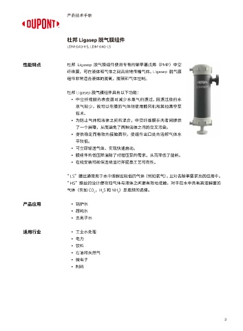性能特点 杜邦 Ligasep 脱气膜组件使用专有的聚甲基戊烯(PMP)中空