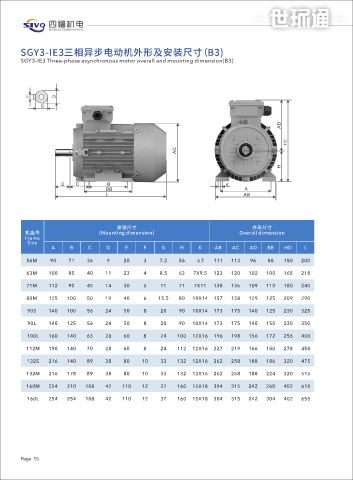 SGY3-IE3三相异步电动机外形及安装尺⼨(B3) SGY3-IE3三相异步电动机外形及安装尺⼨(B5/B35)