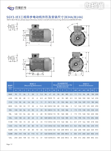 SGY3-IE3三相异步电动机外形及安装尺⼨(B34A/B14A) SGY3-IE3三相异步电动机外形及安装尺⼨(B34B/B14B)