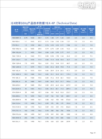 IE4效率50Hz产品技术数据 YE4-2P (Technical Data) IE4效率50Hz产品技术数据 YE4-4P (Technical Data)