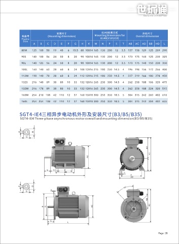 Three-phase asynchronous motor overall and mounting dimension(B14B/B34B) SGT4-IE4 Three-phase asynchronous motor overall and mounting dimension(B3/B5/B35)