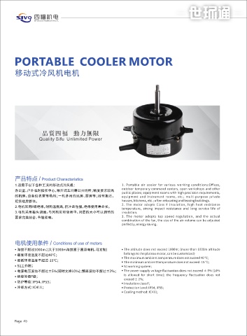 PORTABLE COOLER MOTOR 功率 电 压 频 率 电 流 转 速 功率因数 额转转矩/ 最⼤转矩/ 堵转电流