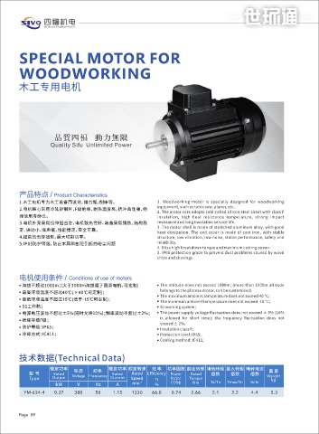 1.⽊⼯电机专为⽊⼯设备⽽设计,如台锯,刨床等。 1. Woodworking motor is specially designed for woodworking