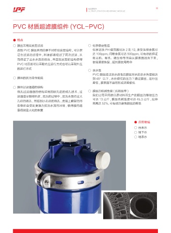 改性 PVC 膜丝釆用的是不对称双皮层结构 , 可以保 化学清洗 PH 值范围可达 2 到 12, 承受连续余氯可
