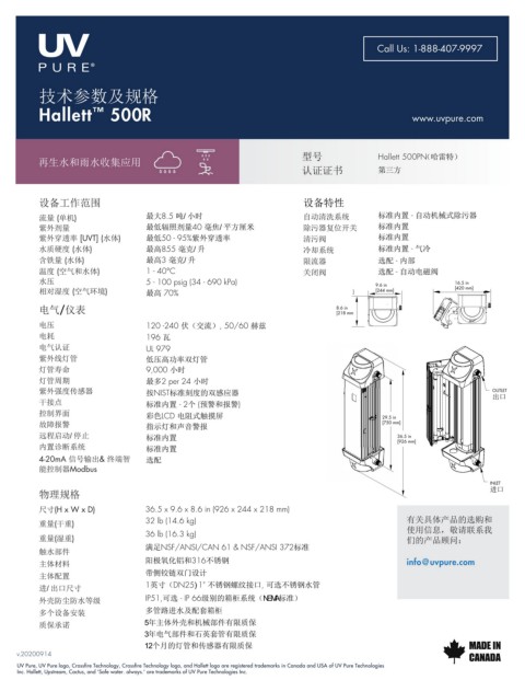 UV Pure, UV Pure logo, Crossfire Technology, Crossfire Technology logo, and Hallett logo are registered trademarks in Canada and USA of UV Pure Technologies
