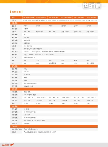 型号 UH 507W-WAN UH 507W-wifi UH 507W-4G UH 510W-WAN UH 510W-wifi UH 510W-4G