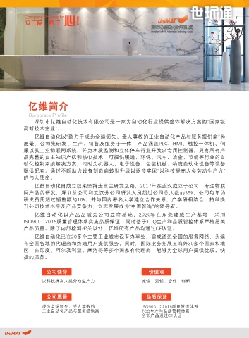 亿 维 自 动 化 以 产 品 品 质 为 公 司 立 命 基 础 ,2020年 在 东 莞 建 成 生 产 基 地 , 采 用 联网,将设备数据传送到亿维云平 现场数据和远程客户端提供数据交 析提供数据支持。
