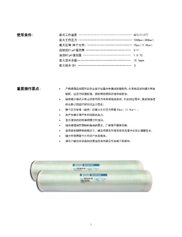 整个压力容器(膜壳)的最大允许压力降是 50psi(3.4bar)。