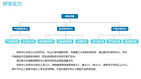 产品策划组 工业设计组 滤材滤料研究 过滤系统研究 水质研究 净水设计组 空气设计组 美容理疗组