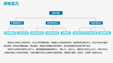 产品策划组 工业设计组 滤材滤料研究 过滤系统研究 水质研究 净水设计组 空气设计组 美容理疗组