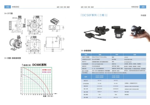 4 扬程( 米) DC50E 系 列 水 泵 壳 体 材料 —PPOT+GF( 可 选 其 它 材质 ) 供电 方式 太阳 能 、板 著 电 、凶 适 配器、 电 源 模 块