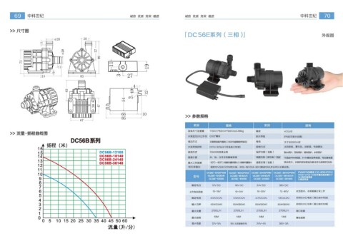 11111 432 扬程 ( 米 ) DC56B 系 列 水 泵 进出 水 口外 径 ”G1/2 "螺纹 防水 等级 IP可6洪8水(安装 )